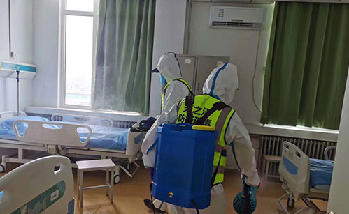 噴霧技術:掛流狀態(tài); 1、橫向噴灑幅度為75 cm; 2、左右幅度間應有5 cm的重疊; 3、自上向下噴灑; 4、首先自上向下噴灑,結束一個噴灌噴 灑幅度 后,順時針橫移,開始下一個幅度噴灑; 5、保持噴嘴距離墻面45 cm; 6、開始噴灑時首先向前傾斜,當噴嘴向下噴灑時,身體向后傾斜; 7、自時口順時針操作,直至房間處理完畢; 8、對人體接觸較多的柜臺、桌椅、門把手、水龍頭等可用0.2%-0.5%過氧乙酸溶液或有效氯為500mg/L-1000mg/L的二氧化氯消毒劑進行噴灑或擦拭消毒,作用時間15-30分鐘。